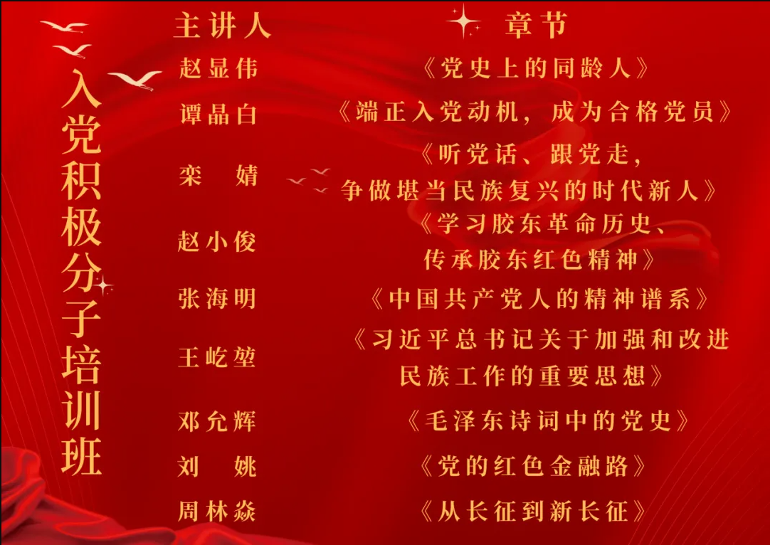 本次培训班旨在引导广大青年员工以党的创新理论为指引,统一思想、统一意志、统一行动,夯实听党话、跟党走的政治基石,筑牢理想信念之魂。通过系统学习,加强党性修养,高扬爱国主义旗帜,为早日成为一名合格的共产党员奠定坚实基础。
