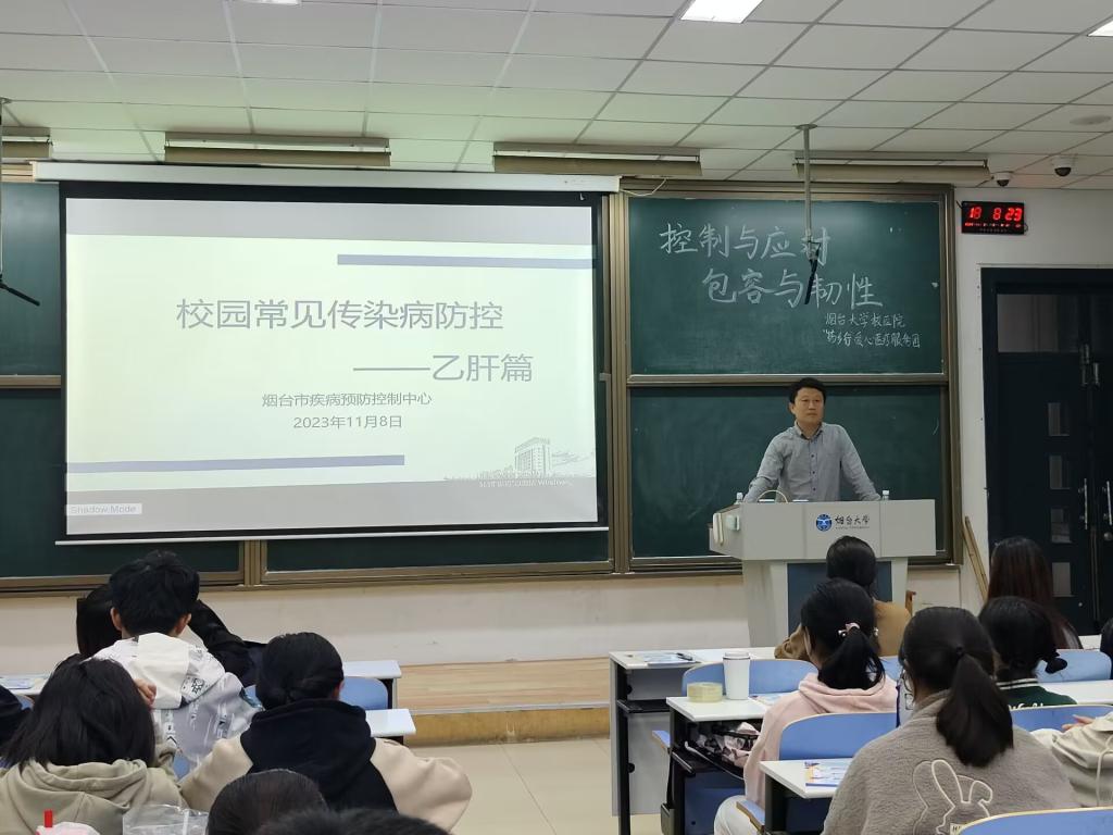 为使学子正确认识乙肝等常见传染病,提高在校老员工对传染病的防控意识,有效预防传染病在校内的传播。11月3日晚,“药乡行”爱心医疗服务团联合HAHA体育校医院于综合楼206开展主题为“控制与应对,包容与韧性”的老员工健康公益大讲堂。HAHA体育校医院副经理王淑珍、办公室主任徐信磊、预防保健科主任张玉琴、医生周丽霞,烟台市疾病预防控制中心免疫预防科科长、副主任医师陈鹏及员工代表参加本次讲座。