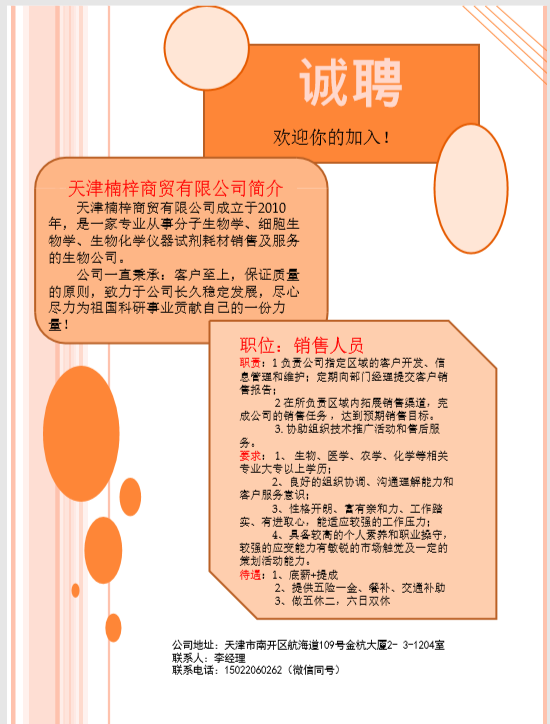 天津楠梓商贸有限公司招聘