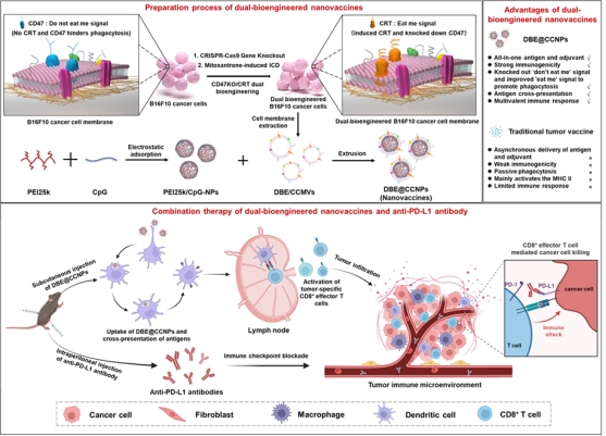 肿瘤疫苗通过诱导机体产生特异性的抗肿瘤免疫反应来促进免疫系统对肿瘤细胞的识别和清除。其中,来自患者的全肿瘤细胞疫苗可以诱导抗原呈递细胞(APCs)呈递大量的肿瘤抗原,从而引发强大的多克隆T细胞免疫反应,最终杀灭肿瘤细胞。然而,肿瘤细胞通过高度表达免疫抑制性分子来降低自身的免疫原性,从而逃避免疫系统的识别和摄取。因此,提高APCs对肿瘤抗原的识别和摄取是增强肿瘤疫苗疗效的关键手段。