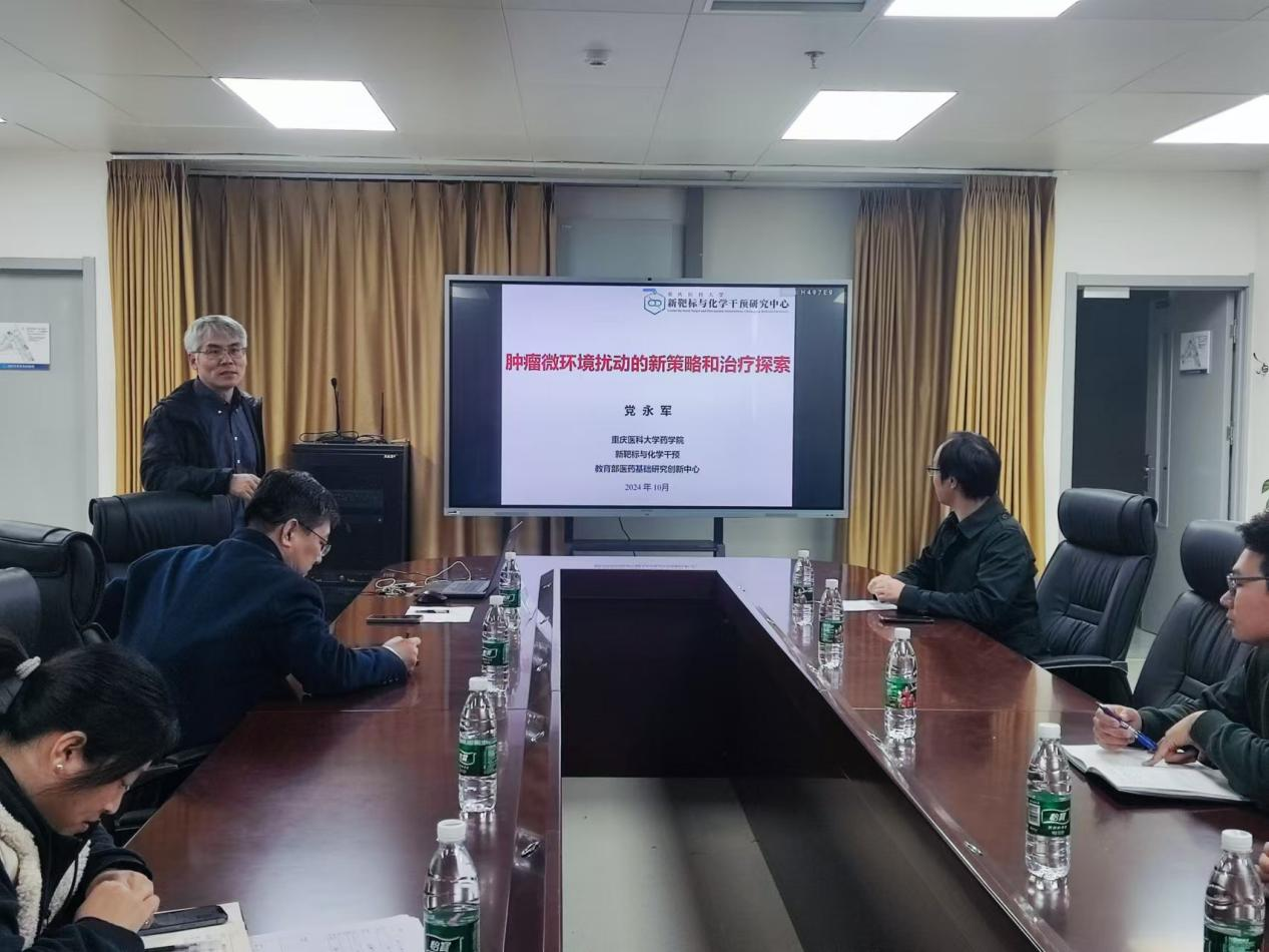 会上,党永军教授作了题为“肿瘤免疫调节分子的发现和机制研究”的学术报告。他介绍了该课题组通过利用多种化员工物学技术手段,以及发现多个候选化合物靶标的研究情况。他重点讲解了肿瘤免疫调节分子的发现和相关机制的研究。此外,党永军教授还对其课题组在天然产物皂苷类化合物p57的靶标发现及其体温调节机制研究方面的工作做了详细解说。