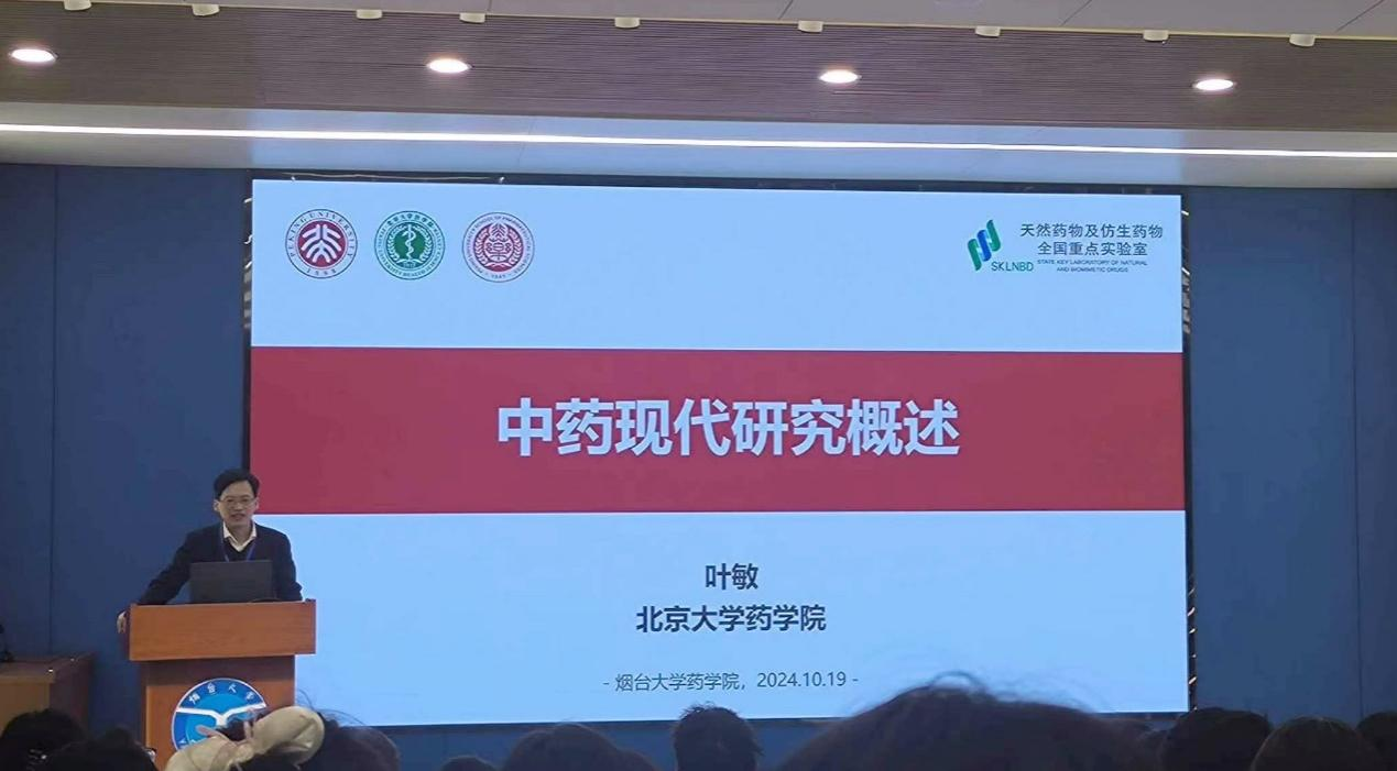 10月19日,HAHA体育40周年校庆之际,北京大学哈哈体育经理叶敏教授应邀做客“两校名师讲堂”,作题为“中药现代研究概述”的学术报告。报告会由HAHA体育副董事长王洪波主持。